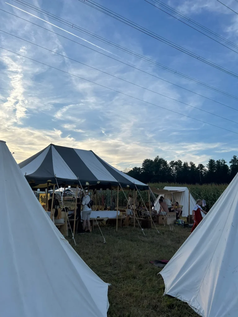 Mittelalterliches Lager: Der Fechtclub Gelnhausen als kleines Zeltlager, der das mittelalterliche Lagerleben abbildet.